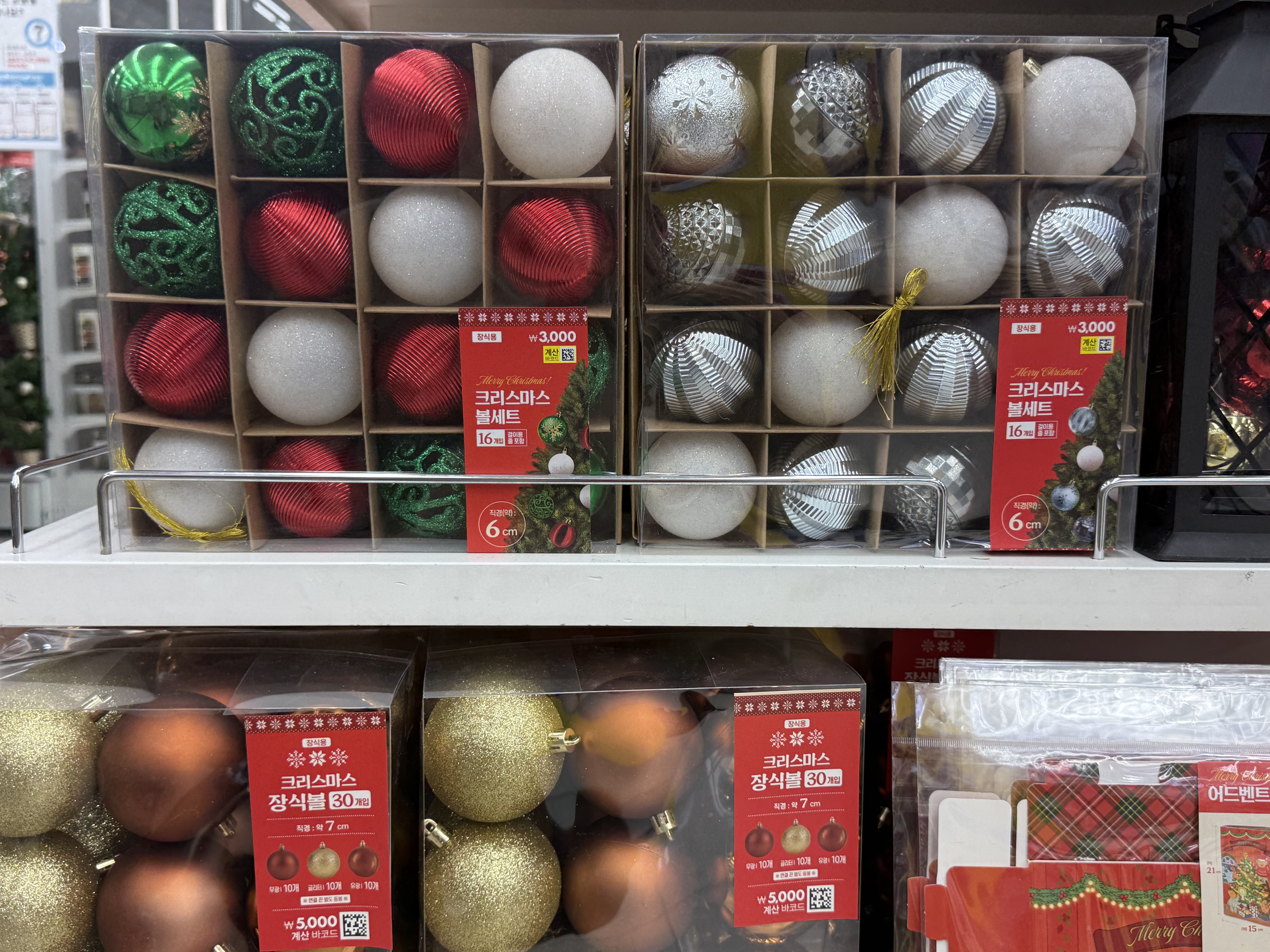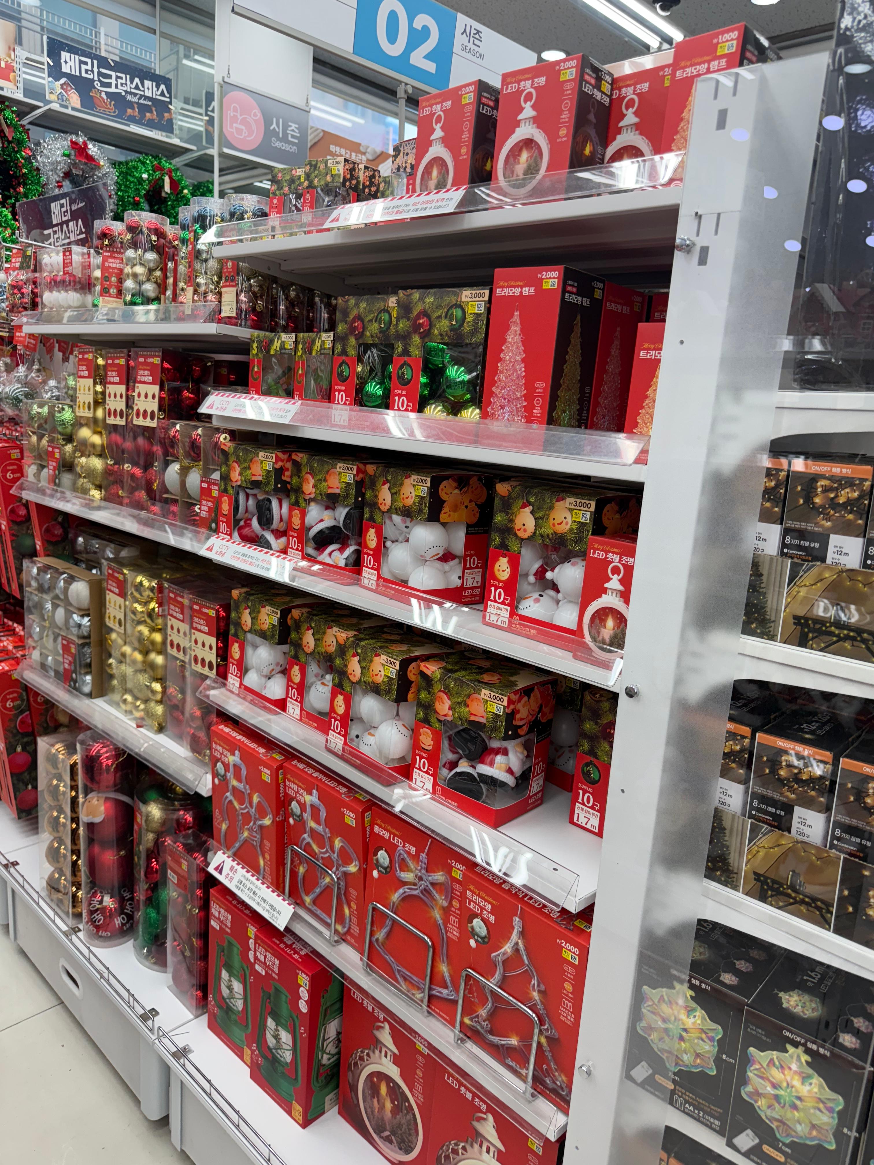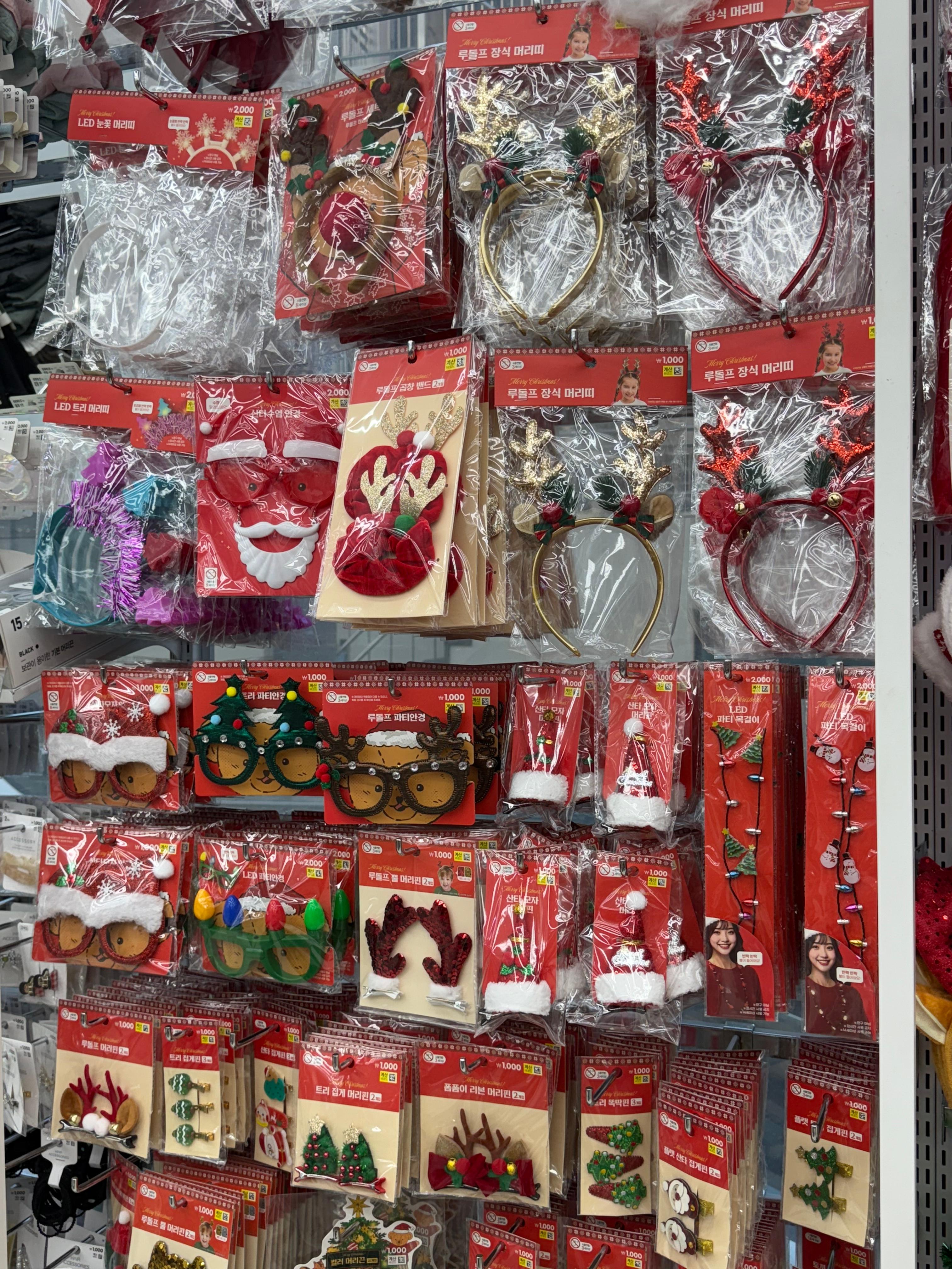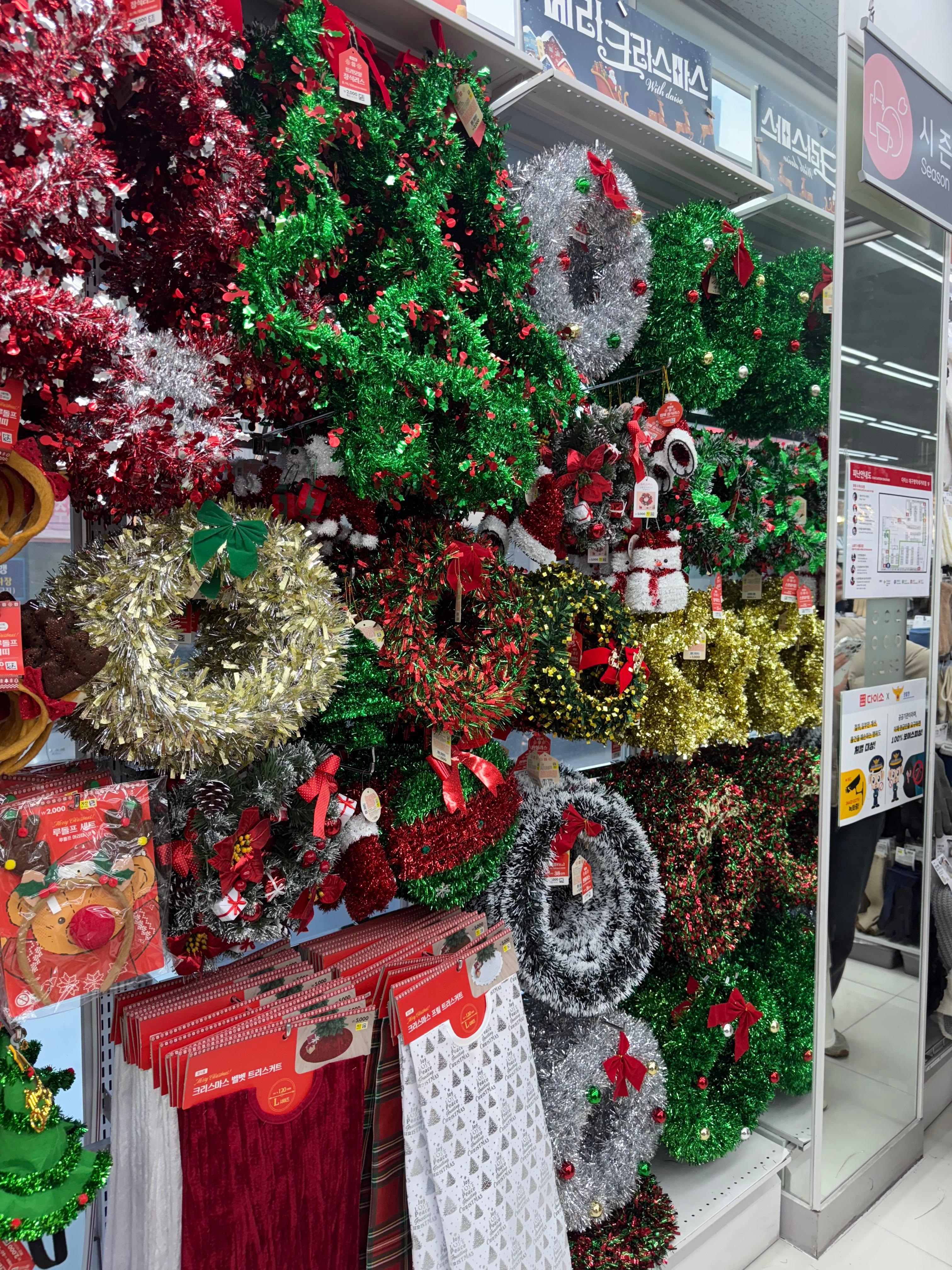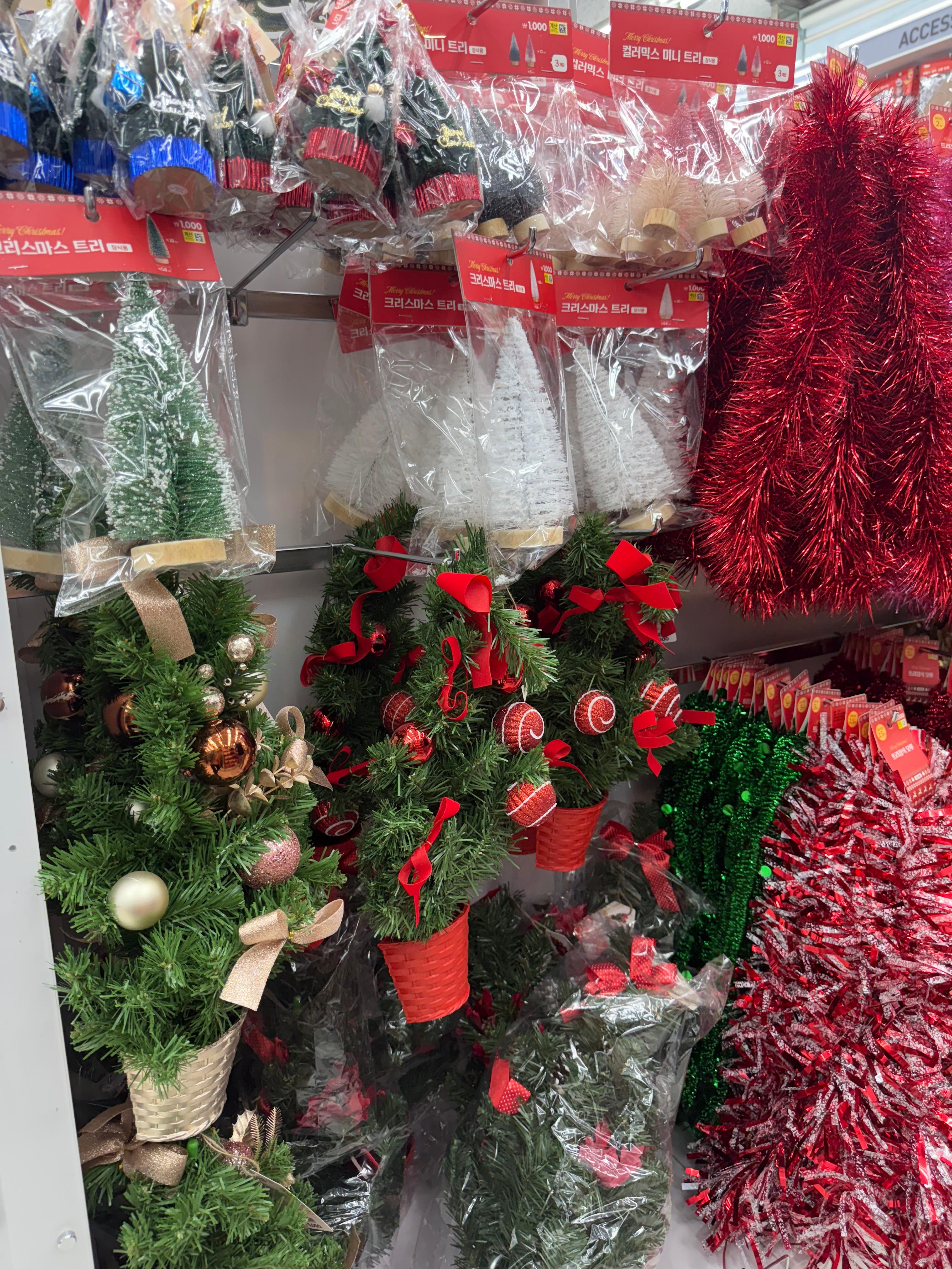 트리부터 오너먼트 머리띠 리스 조명 등등 없는게 없어서