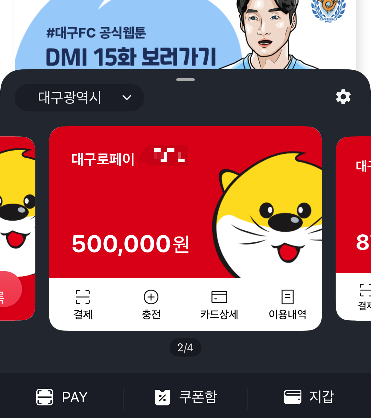 모바일카드로 대구로페이 충전