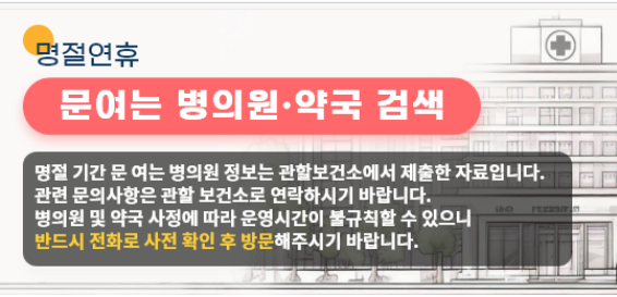 추석 연휴 약국 문여는곳 실시간 확인